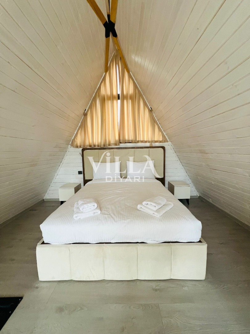 Sapanca/Uzunkum mevkinde bulunan benzersiz mimarisi ve muhteşem doğasıyla çevrili tamamı muhafazakâr 4 adet bungalovumuz, modern yaşam konforunu ve doğanın huzurunu bir arada sunuyor. Bungalovlarımız, yüksek kaliteli özellikleri ve estetik detaylarıyla tasarlanmış, bu sayede her köşede ayrı bir konfor hissi veriyor. Tatil deneyiminizi muhteşem bir şekilde sunduğumuz olanaklar arasında ısıtmalı havuz, ateş çukuru ve barbekü alanları bulunmaktadır. Tüm bu olanaklar, hem dinlenmeniz hem de sevdiklerinizle keyifli zaman geçirmeniz için tasarlanmıştır. Bungalov SPC1001 ailesi olarak, sizlere benzersiz bir tatil deneyimi yaşatmayı hedefliyoruz. Sizi doğanın kucağında, modern ve konforlu bir yaşam alanında ağırlamaktan mutluluk duyacağız.