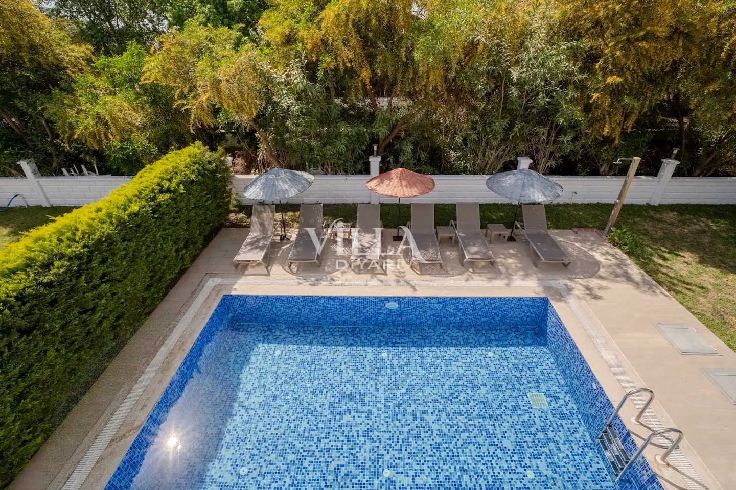 Havuzu korunaklı olarak belirttiğimiz villalarımızda kesinlikle %100 görünmeme garantisi vermemekteyiz. Bu villalarımızda her zaman %10 sakınma payı mevcuttur. Sitemizde bulunan villa fotoğraflarının, görüntüyü ekrana sığdırmak için ’Geniş Açılı Lens’ ile çekilmektedir. Bu sebeple resimlerdeki objeler, gerçek boyutlarından daha büyük veya küçük görünebilmektedir.