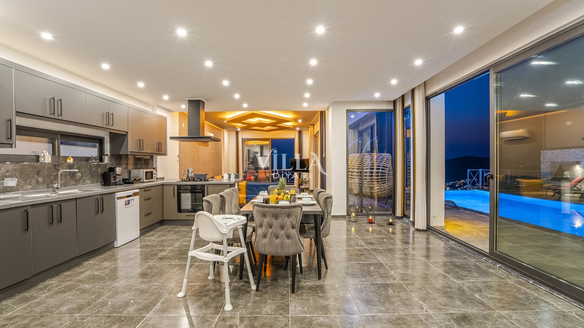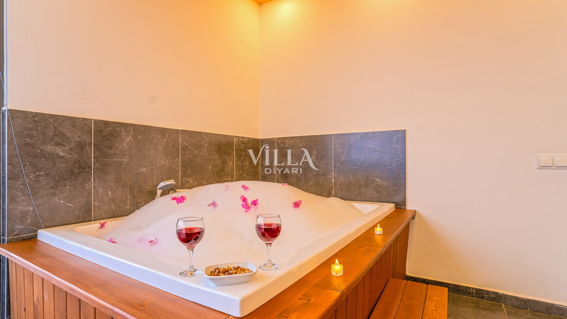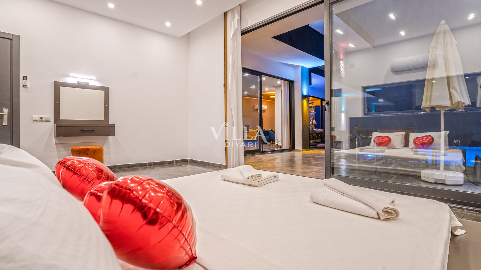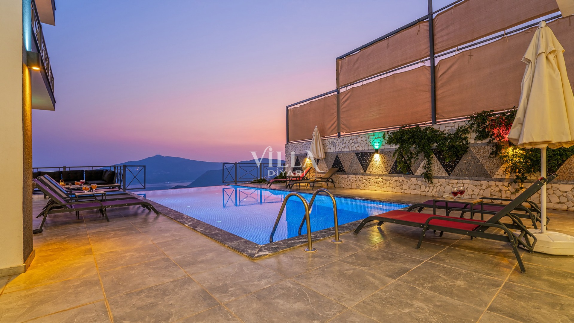 Havuzu korunaklı olarak belirttiğimiz villalarımızda kesinlikle %100 görünmeme garantisi vermemekteyiz. Bu villalarımızda her zaman %10 sakınma payı mevcuttur. Sitemizde bulunan villa fotoğraflarının, görüntüyü ekrana sığdırmak için ’Geniş Açılı Lens’ ile çekilmektedir. Bu sebeple resimlerdeki objeler, gerçek boyutlarından daha büyük veya küçük görünebilmektedir.