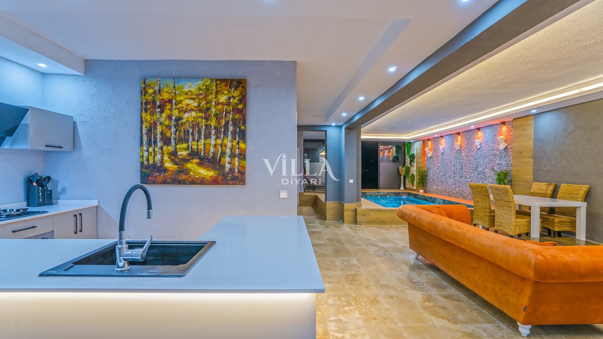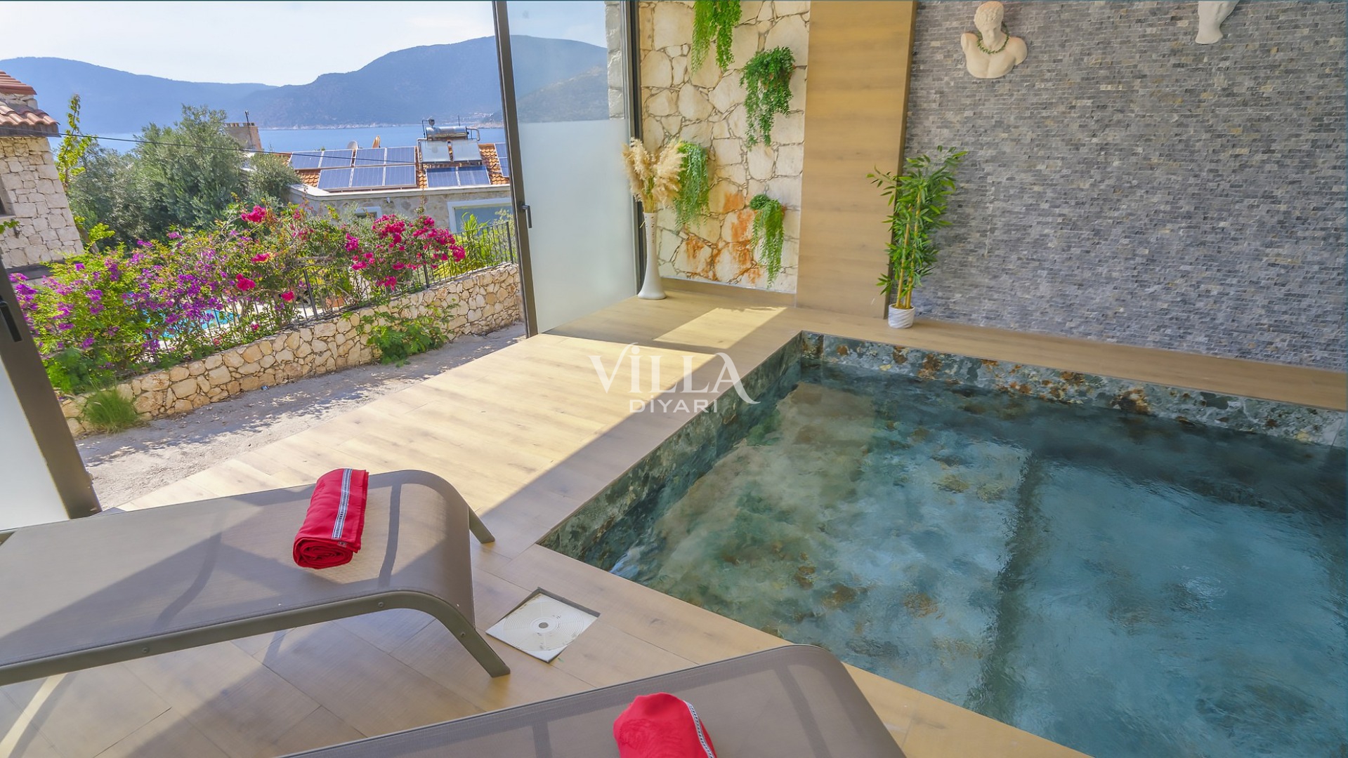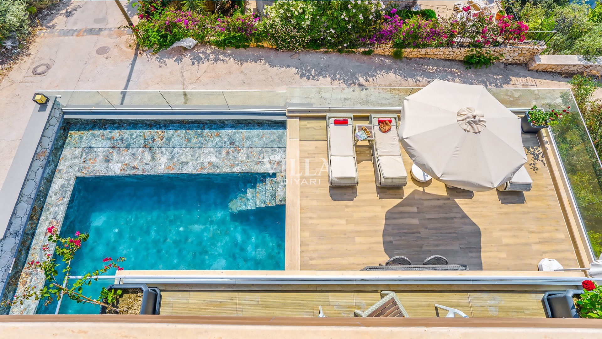Havuzu korunaklı olarak belirttiğimiz villalarımızda kesinlikle %100 görünmeme garantisi vermemekteyiz. Bu villalarımızda her zaman %10 sakınma payı mevcuttur. Sitemizde bulunan villa fotoğraflarının, görüntüyü ekrana sığdırmak için ’Geniş Açılı Lens’ ile çekilmektedir. Bu sebeple resimlerdeki objeler, gerçek boyutlarından daha büyük veya küçük görünebilmektedir.