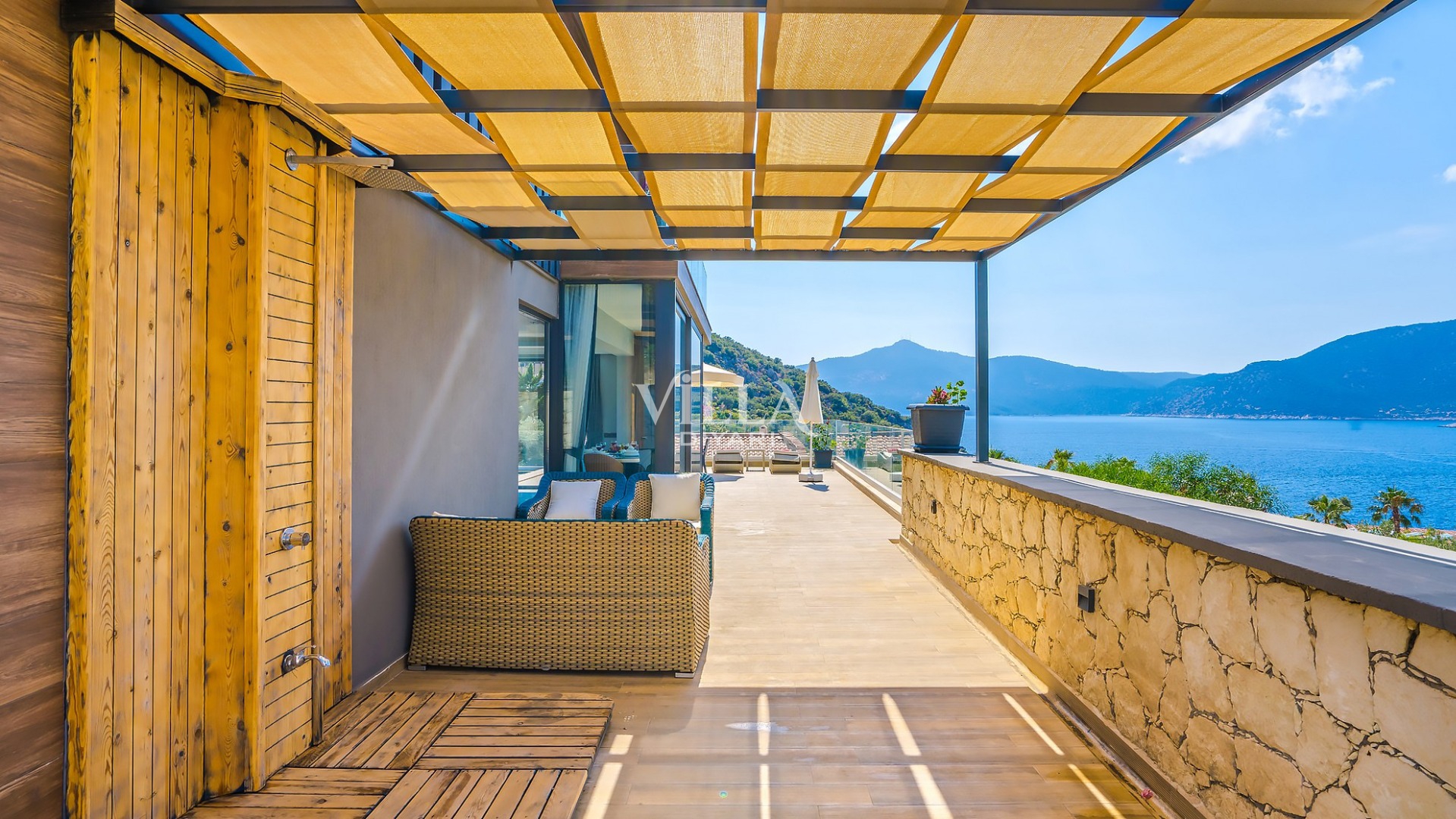 Kalkan Kışla mevkisine konumlanmış, 8 kişilik konaklama kapasitesine sahip olan villamız kalabalık aileler ve ortak arkadaş gruplarına hitap etmektedir. Kalkan'ın eşsiz deniz ve doğa manzarasını ayaklarınızın altına alıp, mükemmel bir tatil geçirme fırsatı sunan villamız sizleri beklemektedir.