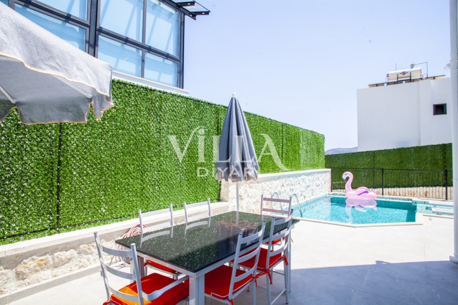 Havuzu korunaklı olarak belirttiğimiz villalarımızda kesinlikle %100 görünmeme garantisi vermemekteyiz. Bu villalarımızda her zaman %10 sakınma payı mevcuttur. Sitemizde bulunan villa fotoğraflarının, görüntüyü ekrana sığdırmak için ’Geniş Açılı Lens’ ile çekilmektedir. Bu sebeple resimlerdeki objeler, gerçek boyutlarından daha büyük veya küçük görünebilmektedir.